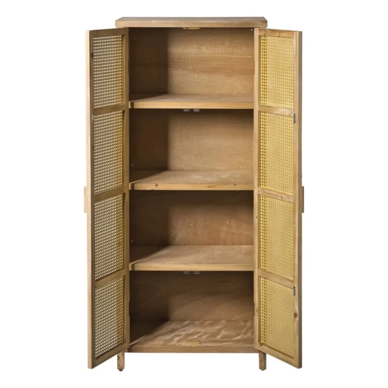 Geef je interieur een warme en natuurlijke uitstraling met deze prachtige rotan kast. Dankzij de luchtige rotan weving, witte afwerking en vier ruime opbergplanken, is deze kast niet alleen stijlvol, maar ook functioneel en veelzijdig. De vier ruime opbergplanken bieden voldoende ruimte om kleding, boeken, servies of decoratie netjes op te bergen. Ideaal voor de woonkamer, slaapkamer of hal: deze kast kan overal in huis worden gebruikt! Gebruik hem als kledingkast in de slaapkamer, voorraadkast in de keuken of als stijlvolle opbergkast in de hal of woonkamer.