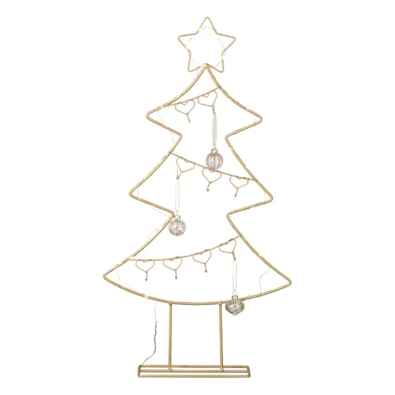 Een echte eyecatcher in je interieur! Deze gouden kerstboom van 77 cm heeft een strak en modern design. De ingebouwde LED verlichting geeft een warme gloed waardoor je kamer meteen in kerstsfeer komt. Zet hem in de woonkamer, hal of slaapkamer en geniet van een feestelijk accent zonder dat je een grote boom hoeft neer te zetten. Perfect om te combineren met andere gouden kerstballen of een andere opvallendere kleur.