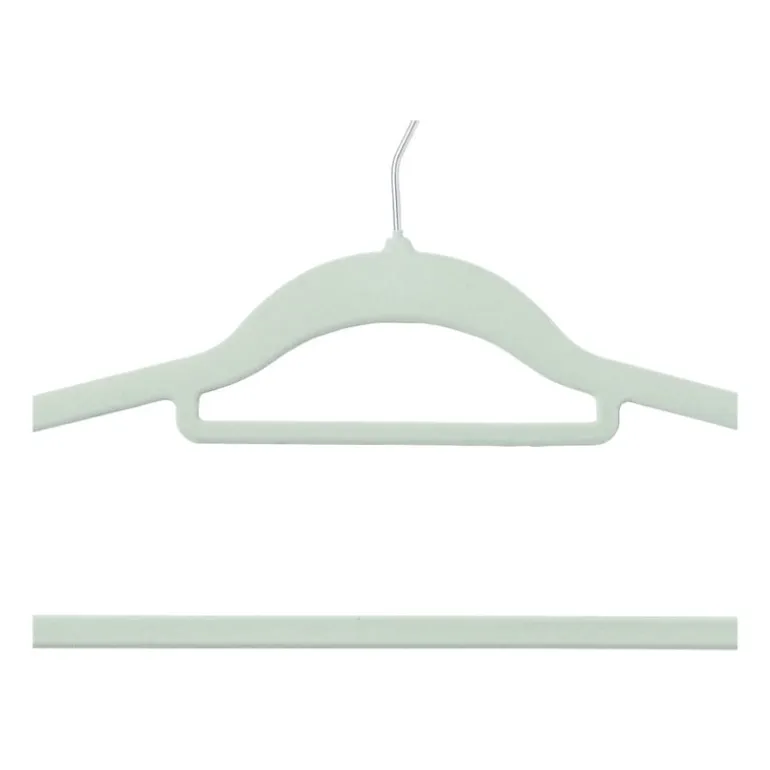 Deze set van 5 stijlvolle groene kledinghangers hang je graag in de kledingkast of aan de kapstok. De kleerhangers hebben een zachte laag van vilt. Ze voelen prettig aan en zijn toch enigszins ruw zodat je blouse er niet af glijdt. Ook hebben ze een broeklat, zodat je jouw broeken ook netjes kan ophangen. De kledinghangers zijn gemaakt van vilt en metaal en hebben een hoogte van 23 cm, een breedte van 45 cm en een diepte van 0.6 cm. De kleding komen in een set van 5 en zijn ook verkrijgbaar in verschillende kleuren.