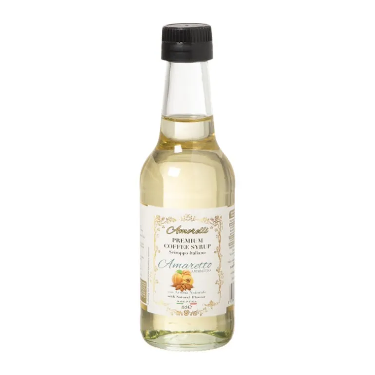 Geniet van de luxe smaak van amaretto met onze amaretto koffie siroop! Deze 250 ml fles biedt de rijke, notige zoetheid die perfect is voor het verrijken van je koffie en het creëren van een unieke smaakervaring. Voeg het toe aan je favoriete koffie voor een warme, verwarmende traktatie of gebruik het om desserts een extra dimensie te geven. Een heerlijke manier om de smaak van Italië in je keuken te brengen!