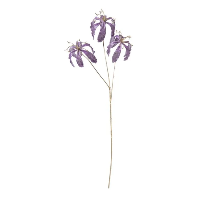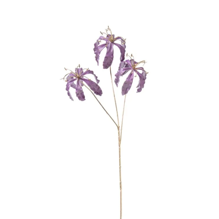 Op zoek naar een chique eyecatcher voor je vaas? Deze kunstbloem Gloriosa in goud met paars is een echte sfeermaker. De bloem straalt luxe uit dankzij de metallic gouden accenten, terwijl het diepe paars zorgt voor een warme, mysterieuze touch. Zet ‘m solo in een vaasje of combineer met andere kunstbloemen voor een weelderig boeket.
