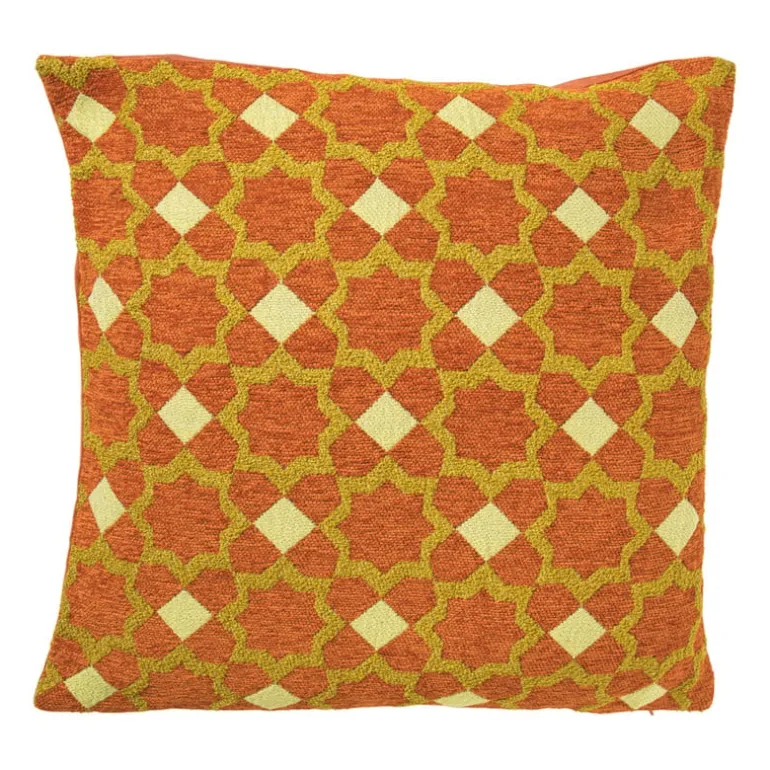 Laat je interieur opbloeien met dit jacquard geweven kussen vol oranje bloemen. Het rijke patroon en de warme tinten zorgen voor een retro vibe met een moderne twist. Perfect voor op de bank, een fauteuil of je bed. Het kussen heeft een afmeting van 45×45 cm. Combineer ‘m met effen kussens of juist andere kussens met print voor een speelse mix & match.