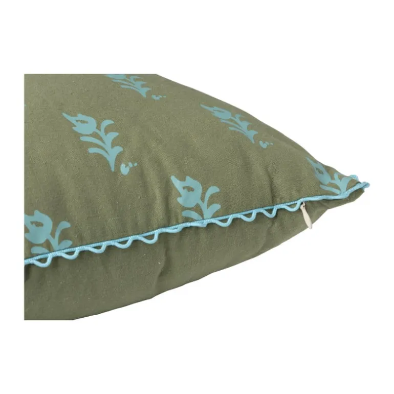 Haal Franse charme in huis met dit kussen! Dit stijlvolle sierkussen combineert een vrolijke print met een levendige kleur groen die direct sfeer brengt in elke ruimte. De golvende omranding van het kussen is blauw. Perfect voor op de bank, een fauteuil of in de slaapkamer. Combineer het met de andere kleurrijke kussens voor een speelse mix van kleuren en prints.