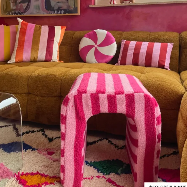 Dit vrolijke kussen wil je hebben! Het kussen heeft rood en roze strepen en fleurt elke ruimte op. Combineer ‘m met andere kleurrijke kussens op je bank, in een fauteuil of op je bed. Het kussen is gemaakt van polyester en heeft een hoogte van 30 cm en een breedte van 45 cm. Het kussen is aan de voor- en achterkant hetzelfde en is voorzien van een ritssluiting aan de onderkant. Hierdoor kan de hoes gemakkelijk worden verwijderd en worden gewassen in de wasmachine (maximaal 30°C).