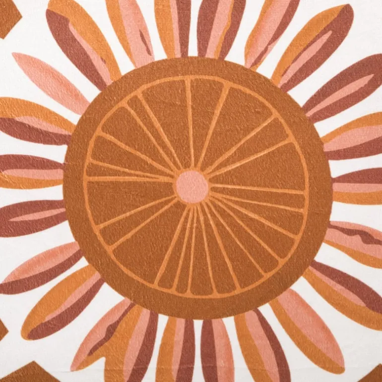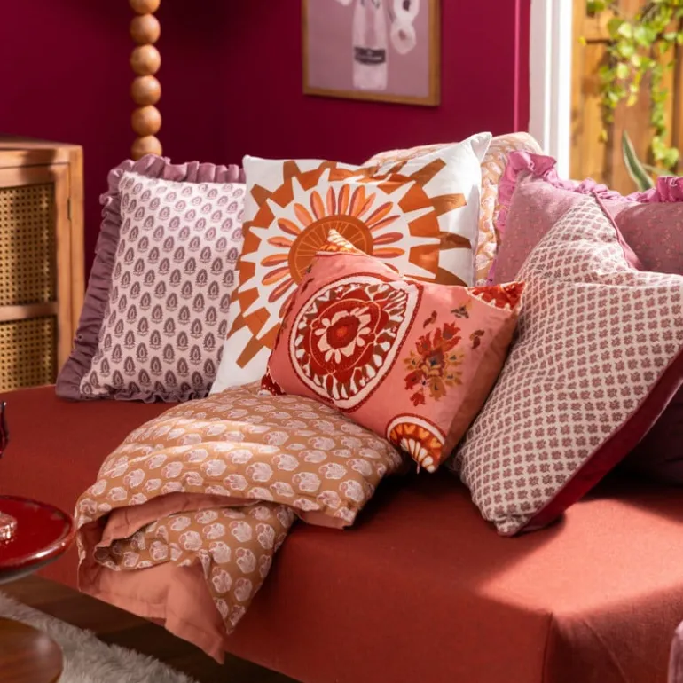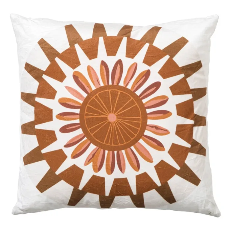 Zonnetje in huis? Jazeker! Met dit oranje velvet kussen met zonvormig patroon geef je direct warmte aan je interieur. De fluweelzachte stof en opvallende print zorgen voor een vrolijke, boho vibe op je bank of fauteuil.