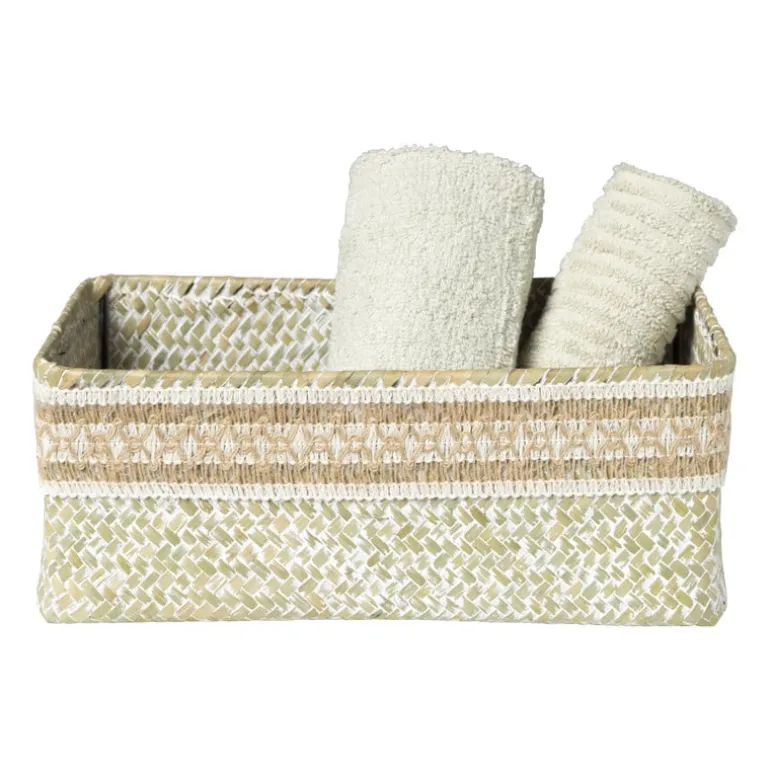 Lademand Stijn is niet alleen praktisch, maar ook stijlvol. Of je nu op zoek bent naar een oplossing voor rondslingerende spulletjes in de gang, een georganiseerde opbergplek voor je beauty essentials in de badkamer, of een nette plek voor je favoriete boeken en tijdschriften in de woonkamer, lademand Stijn is de oplossing. De mand heeft een decoratieve strook met patroontjes aan de bovenkatn. Deze lademand heeft een hoogte van 10 cm, een breedte van 27 cm en een diepte van 17 cm.