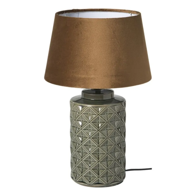 Deze keramieken lampvoet met subtiel ruitpatroon en glanslaag brengt textuur en klasse in je interieur. Mooi op een dressoir of nachtkastje. De lampvoet is geschikt voor een lamp met een E27 fitting.