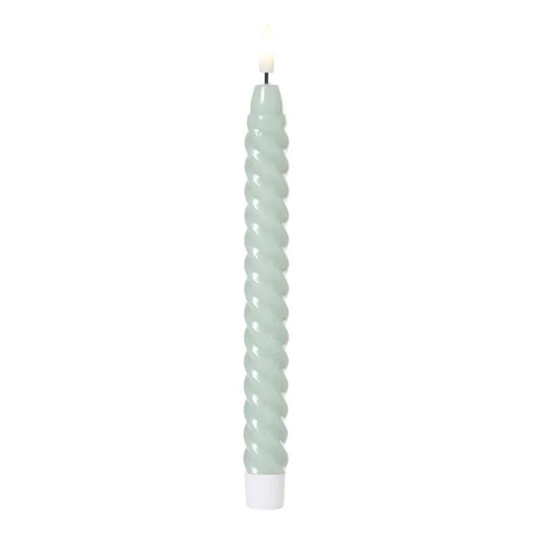 Deze groene LED twistkaars draait letterlijk om sfeer. Het gedraaide design is speels, de felle kleur vrolijk, en het zachte LED-licht heerlijk gezellig. Perfect voor een gedekte tafel met karakter! De LED kaars werkt op 2x AAA batterijen, deze zijn exclusief.