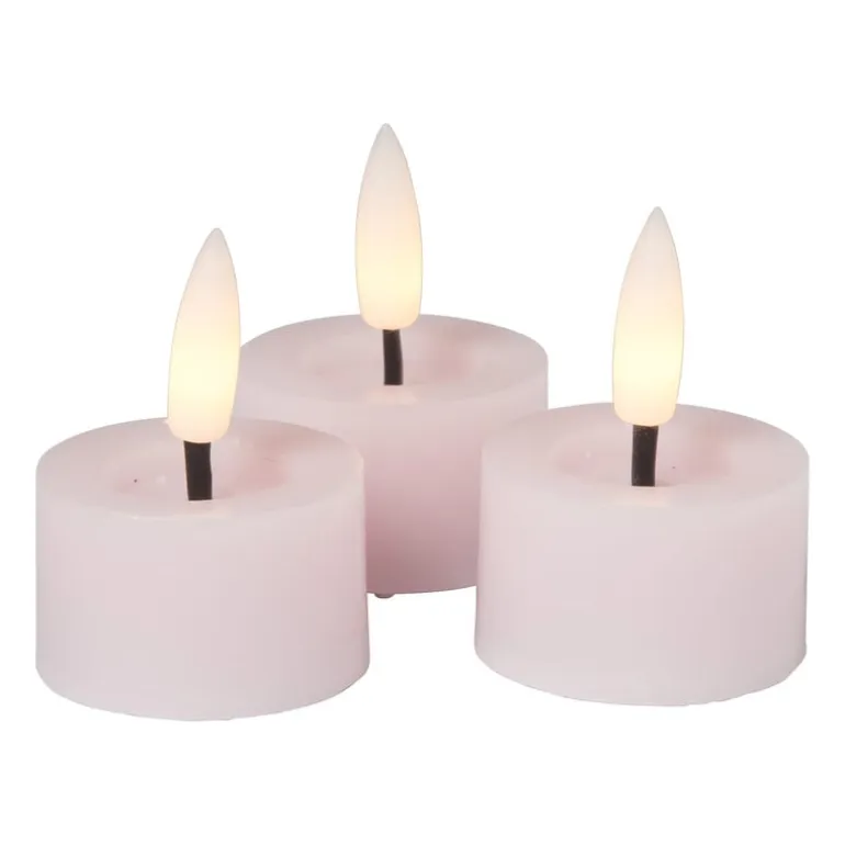 Geniet veilig van het sfeervolle flikkerende licht dat deze LED theelichtjes geven. Deze set van 3 roze waxinelichtjes zorgt voor een gezellige sfeer en voor een realistisch flikkerend kaarslicht, zonder de rommel van kaarsvet of het risico van vuur. De LED waxinelichtjes hebben een afmeting van ø4×2.5 cm, waardoor het mogelijk is om de waxinelichtjes in een leuke waxinelichthouder te plaatsen. De LED waxinelichten komen in een set van 2 en werken op batterijen.