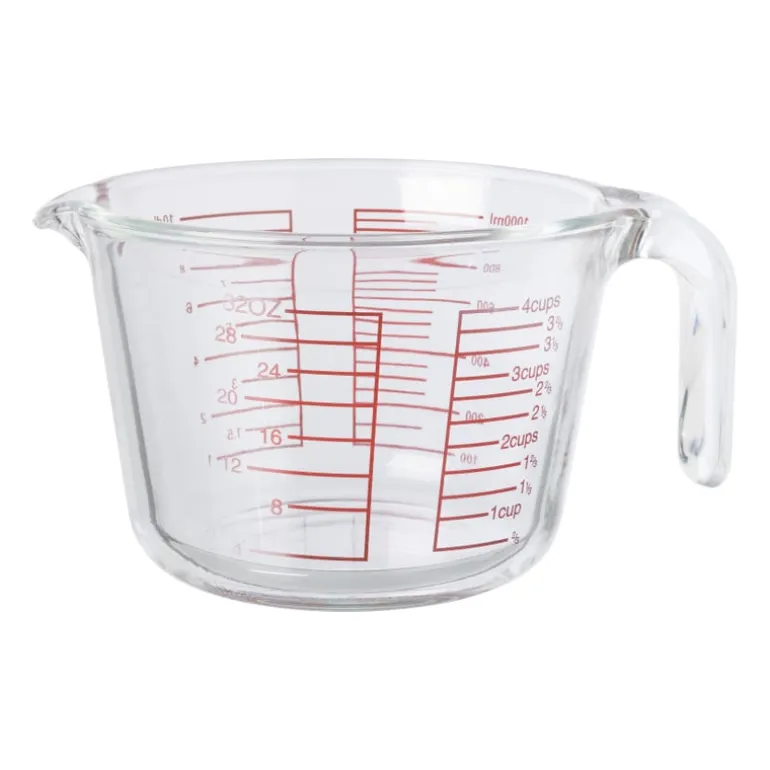 Dankzij deze maatbeker zul je nooit meer te veel of te weinig water of melk gebruiken bij het koken of bakken. De glazen maatbeker heeft een inhoud van 1 liter, verdeeld met streepjes per 100 ml.