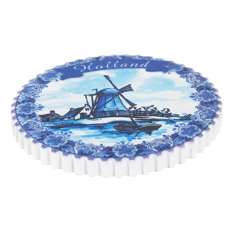 Ben jij of ken jij iemand die (koelkast)magneten spaart van alle vakantiebestemmingen? Voeg dan deze magneet in de vorm van een bord met Hollandse molen toe aan de collectie! Een mooie verrijking voor op de koelkast of memobord. De magneet is wit en met blauwe inkt beschilderd. De prachtige details komen overal naar voren.