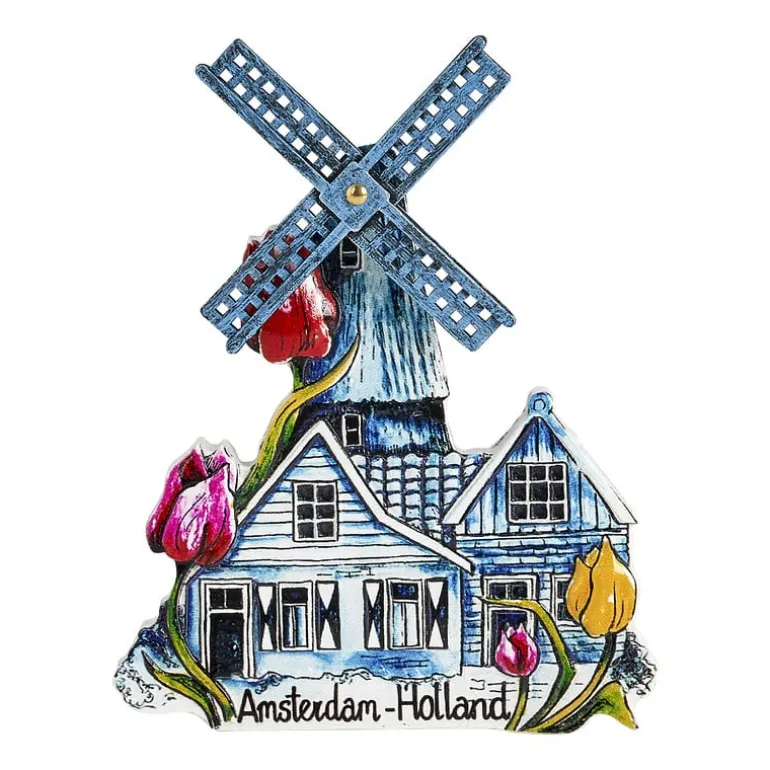 Ben jij of ken jij iemand die (koelkast)magneten spaart van alle vakantiebestemmingen? Voeg dan deze magneet met Hollandse molens toe aan de collectie! Een mooie verrijking voor op de koelkast of memobord.