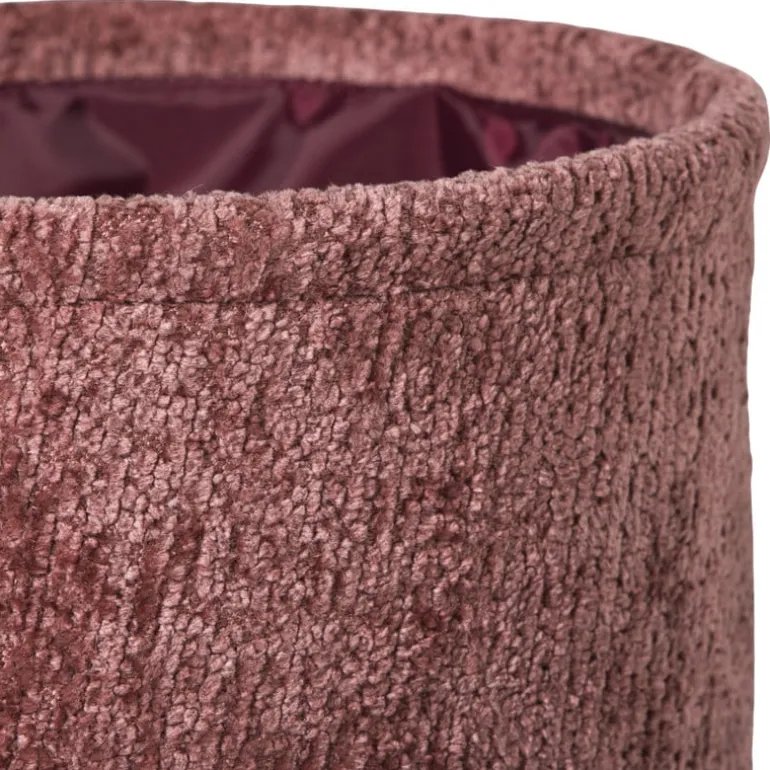 Deze ronde mand in rood chenille is heerlijk zacht én stijlvol. Met een formaat van 24×14 cm is hij ideaal voor kleine spullen zoals sieraden, make-up of bureauaccessoires.