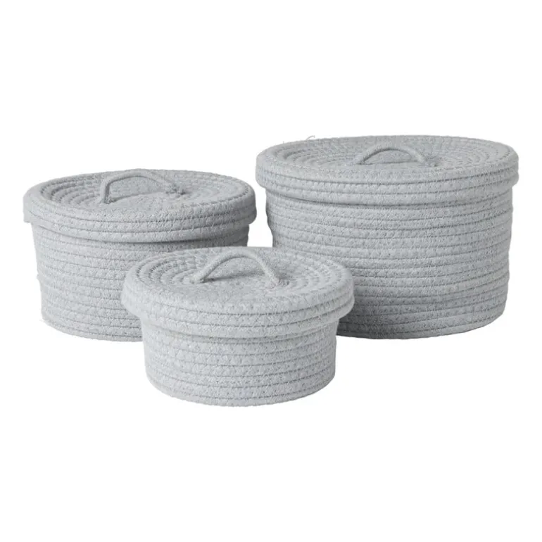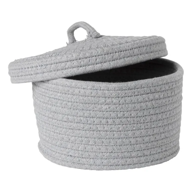 Manden zijn altijd goed om een beetje structuur te geven aan jouw leefomgeving. Deze handige mand met deksel is mooi en multifunctioneel in gebruik. De mand met deksel Julia is gemaakt van polyester en katoen een heeft een grijze kleur. De mand heeft een diameter van 22 cm en een hoogte van 13 cm.