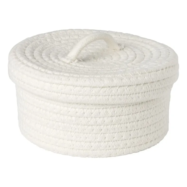 Manden zijn altijd goed om een beetje structuur te geven aan jouw leefomgeving. Deze handige mand met deksel is mooi en multifunctioneel in gebruik. De mand met deksel Julia is gemaakt van polyester en katoen een heeft een witte kleur. De mand heeft een diameter van 19 cm en een hoogte van 10 cm.