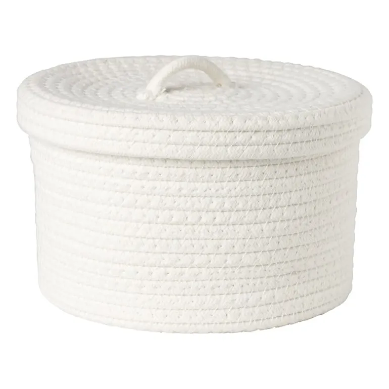 Manden zijn altijd goed om een beetje structuur te geven aan jouw leefomgeving. Deze handige mand met deksel is mooi en multifunctioneel in gebruik. De mand met deksel Julia is gemaakt van polyester en katoen een heeft een witte kleur. De mand heeft een diameter van 25 cm en een hoogte van 15 cm.