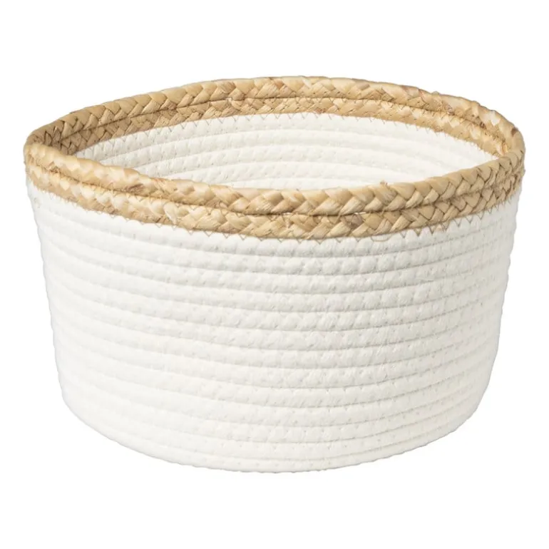 Opbergen doe je in stijl met deze witte mand met bruine rand. Berg gemakkelijk allerlei spullen op; van speelgoed tot een leuke kamerplant (met pot, natuurlijk). De mand is gemaakt van katoen en heegt een afmeting van ø20×13 cm. De mand is ook verkrijgbaar in een grotere variant.