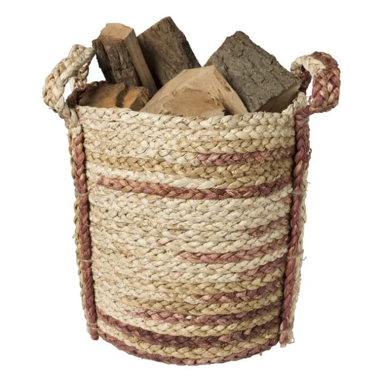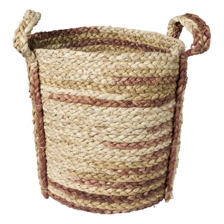 Met deze mandjes organiseer jij je spullen op een stijlvolle manier! De manden hebben natuurlijke tinten met een donkerrode tint erdoorheen. De grootste mand heeft een diameter van 28 cm en een hoogte van 32 cm en de kleinere mand heeft een diameter van 25 cm en een hoogte van 27 cm.