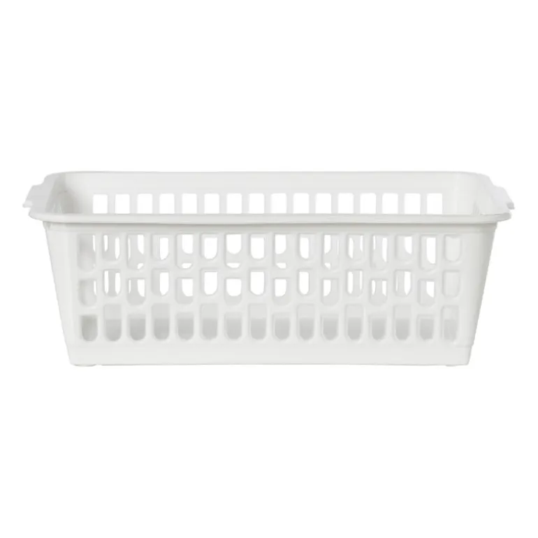 Rommel is verleden tijd met dit handige mandje. Met dit fijne mandje creëer je eenvoudig overzicht in je kast. Het mandje is wit van kleur en gemaakt van kunststof. De afmeting is 24x14x8 cm.