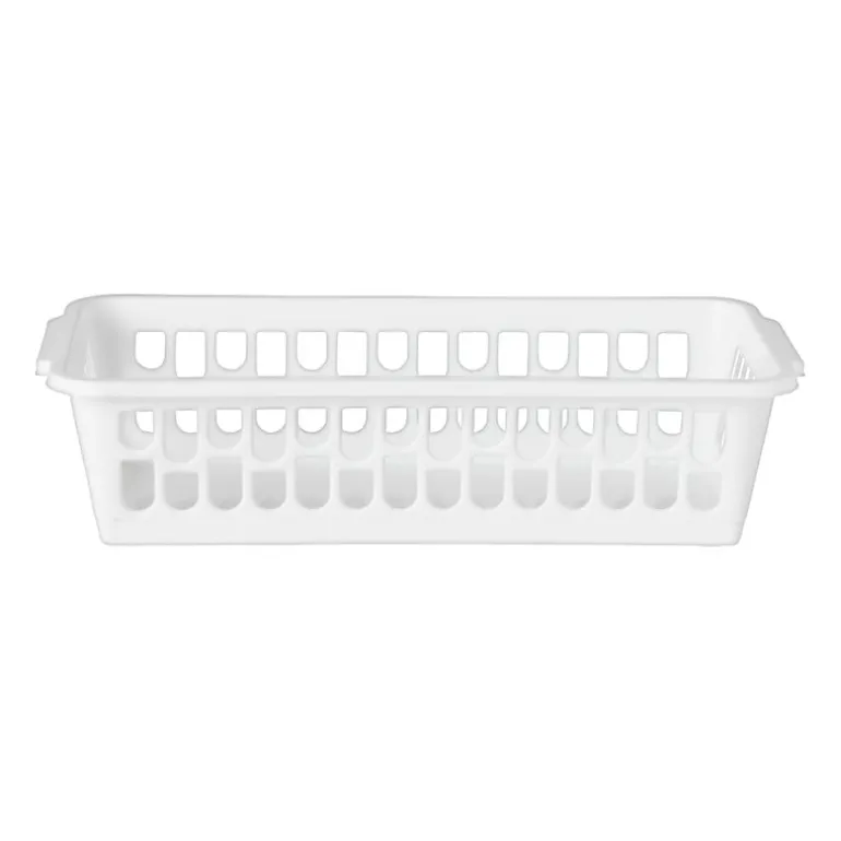 Rommel is verleden tijd met dit handige mandje. Met dit fijne mandje creëer je eenvoudig overzicht in je kast. Het mandje is wit van kleur en gemaakt van kunststof. Het mandje heeft een hoogte van 4.5 cm, een breedte van 19 cm en een diepte van 9.2 cm.