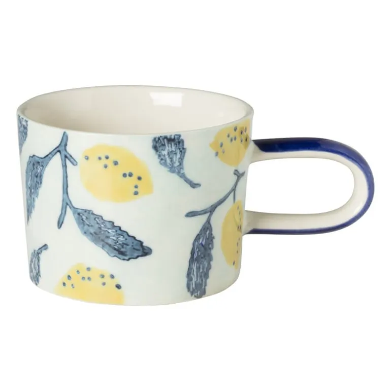Deze mok is versierd met citroenen, gemaakt van stoneware en heeft een blauw oortje. Deze collectie maakt jouw high tea helemaal compleet. De citroenen op deze mok worden met de hand beschilderd, waardoor je altijd een uniek exemplaar in je kast hebt staan. De inhoud van deze mok is 200 ml en en de mok is vaatwasmachine- en magnetronbestendig.