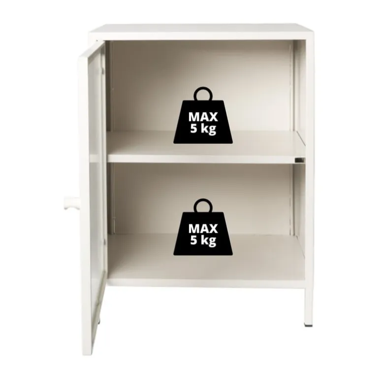 De bovenkant van het nachtkastje en de planken hebben een maximaal draagvermogen van 5 kg.