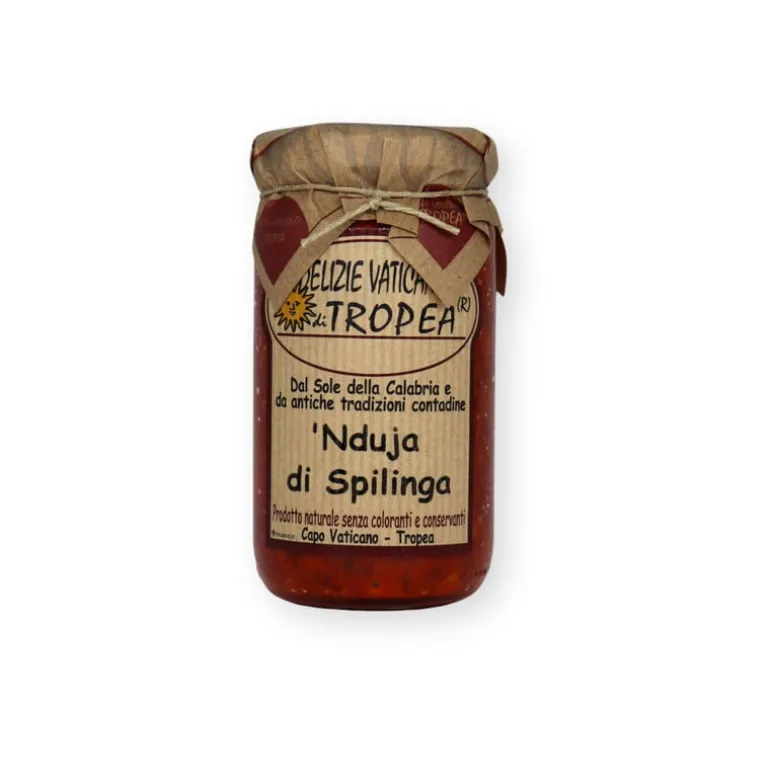Ontdek de pittige Italiaanse smaakexplosie met deze Nduja di Spilinga! Deze heerlijke, smeerbare worst brengt de authentieke smaken van Calabrië, Italië rechtstreeks naar jouw keuken. Laat je verrassen door de intense smaak van pittige Calabrese pepers en varkensvlees. Smeer het op vers gebakken brood, voeg het toe aan je pasta als saus of gebruik het als topping op een pizza.