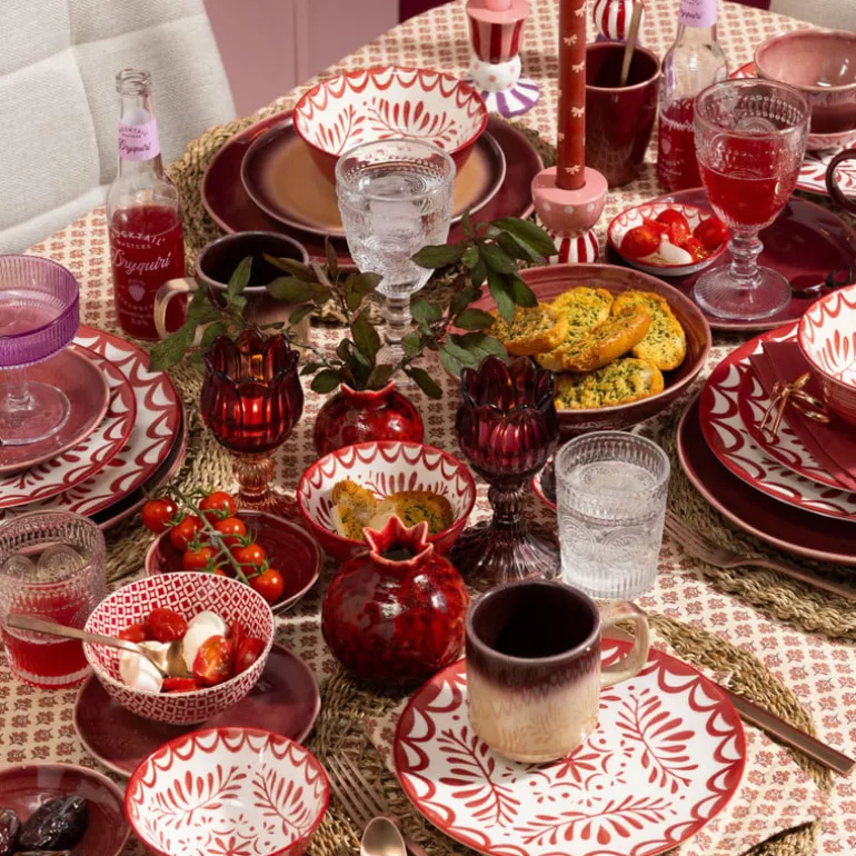 Zin in wat meer kleur en gezelligheid aan tafel? Dan zit je met het Sterre servies helemaal goed. Dit rood-witte servies springt direct in het oog met zijn speelse patronen en folklore print. Ideaal voor de feestdagen, maar óók perfect voor elke dag die wel een beetje extra flair kan gebruiken. De diepe rode kleur in combinatie met het frisse wit zorgt voor een warme, uitnodigende uitstraling. Servies Sterre is mooi te combineren met basic ander servies of houten serveerplanken en ideaal voor feestdagen, brunches, tapasavonden of gewoon zomaar.