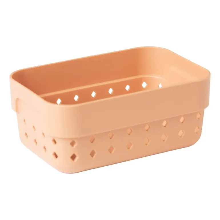 Rommel is verleden tijd met dit handige oranje opbergbakje. Met de fijne bakje creëer je eenvoudig overzicht in je kast. Door de gaatjes in het bakje zie je al deels de inhoud. Een andere voordeel is dat ze makkelijk te stapelen zijn. Het mandje is gemaakt van kunststof en heeft een afmeting van 11.8×7.8×5 cm.