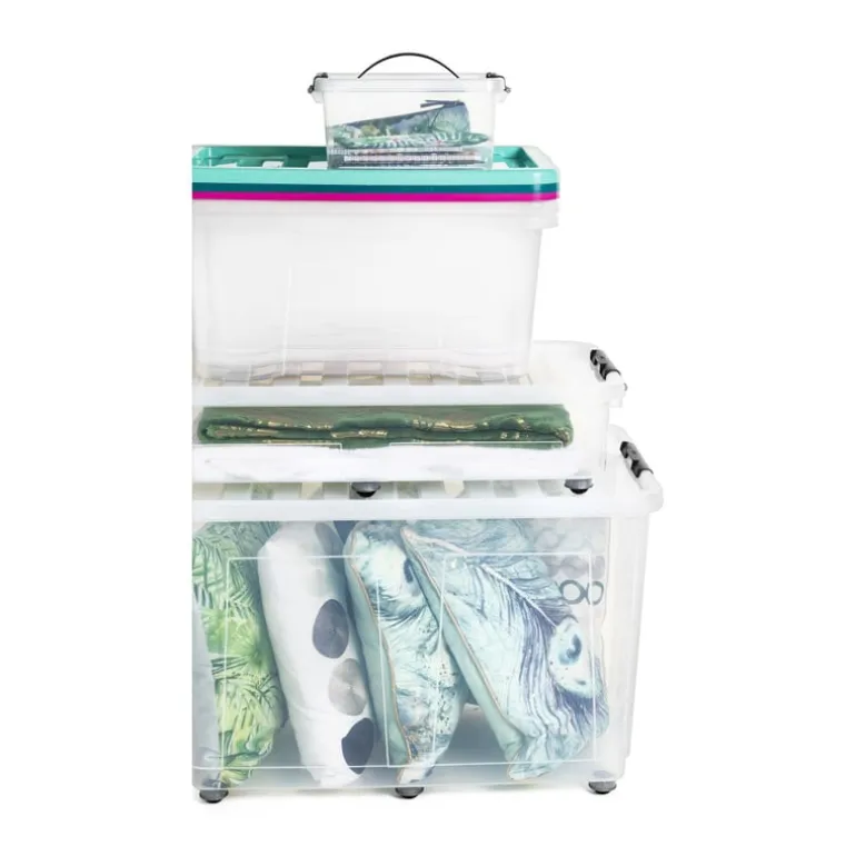 De opbergbox is volledig transparant waardoor je niet meer de deksel hoeft te openen om te kijken wat er in de box is opgeborgen. De kunststof opbergbox heeft een deksel die met clips aan de zijkant vastgeklikt wordt.