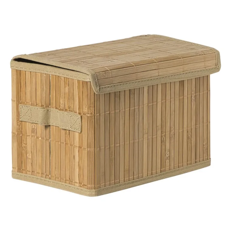 Deze kleine opbergmand met deksel van natuurlijk bamboe is ideaal voor de kleine dingen die je graag uit het zicht houdt: ladekastrommel, haarelastiekjes, laders of make-up. Het compacte formaat past perfect op een plank of in een lade, en dankzij het deksel blijft alles stofvrij en netjes. Mooi én multifunctioneel dus!