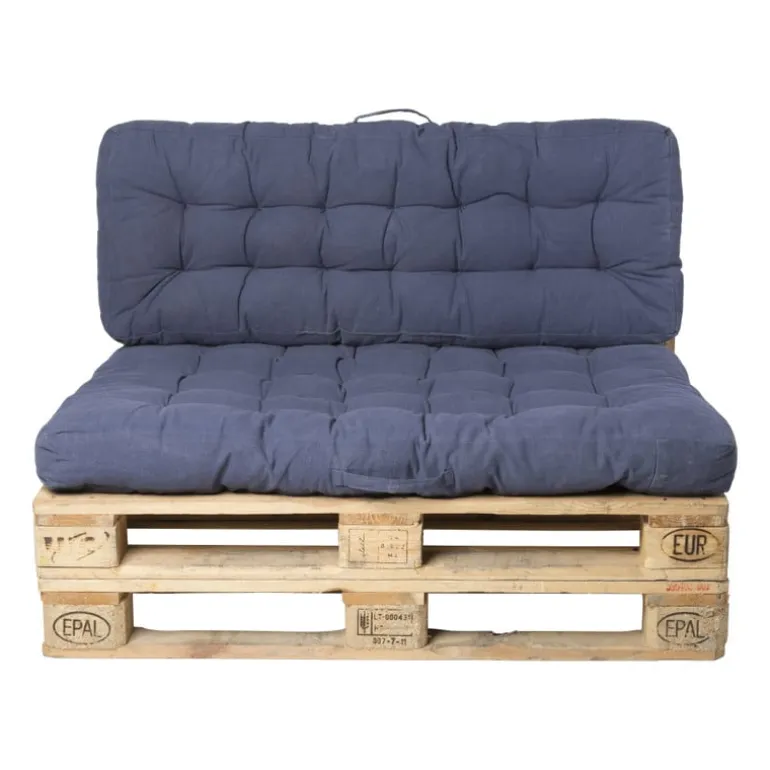 Dé perfecte kussens voor op een pallet. Creëer eenvoudig je eigen tuinset met behulp van deze kussens en pallets. In deze set zitten twee donkerblauwe palletkussens. De afmeting van het kussen voor het zitvlak is 120×80 cm en het andere kussen is 120×40 cm. De palletkussens zijn netjes afgewerkt en hebben doorgestikte naden.