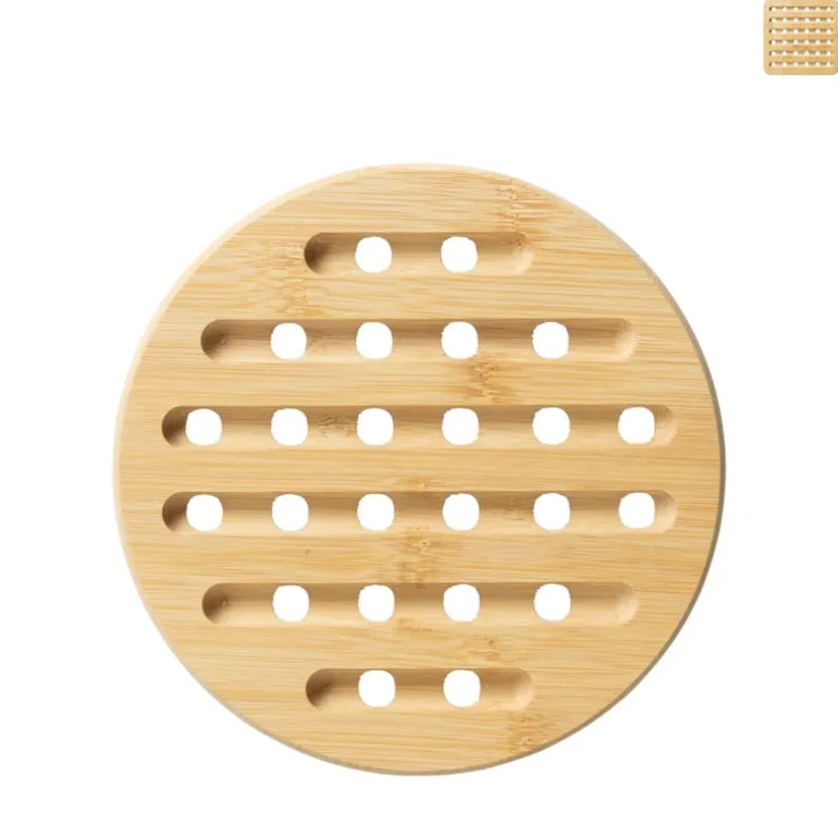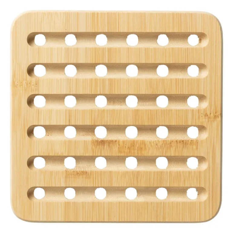 Deze tafelonderzetter is ideaal om krassen en kringen te voorkomen op het tafelblad. De onderzetter is gemaakt van bamboe en heeft een afmeting van 20×20 cm.