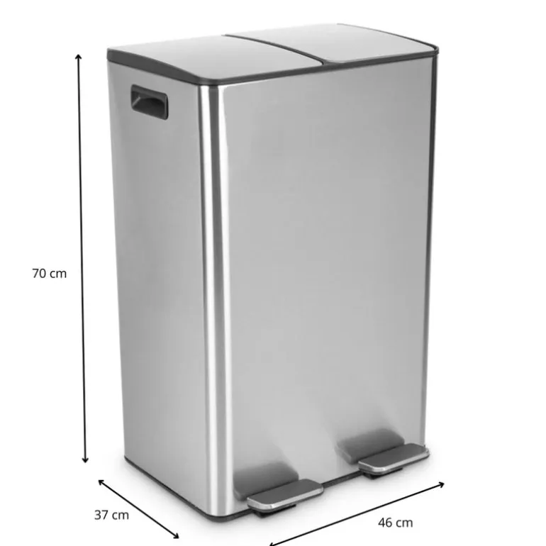 Deze pedaalemmer duo bin is een absolute musthave als je graag je afval wilt scheiden. De duo prullenbak van 60 liter bestaat namelijk uit twee aparte delen van ieder 30 liter, handig! Gebruik de ene helft voor groen afval en de andere helft voor restafval. Of gebruik de duo bin juist om papier te scheiden van het gewone afval. Het kan allemaal! De pedaalemmer is eenvoudig en hygiƫnisch te openen met behulp van het voetpedaal en is gemaakt van RVS. Hierdoor krijgt de afvalbak tevens ook een modieuze uitstraling in een zilveren kleur. Wanneer je deze pedaalprullenbak dus in de keuken zet, zal dat er zeker niet verkeerd uit zien. Modieus, mooi, verantwoord en ook nog praktisch, dat is deze pedaalemmer 2 vakken van 60 liter.