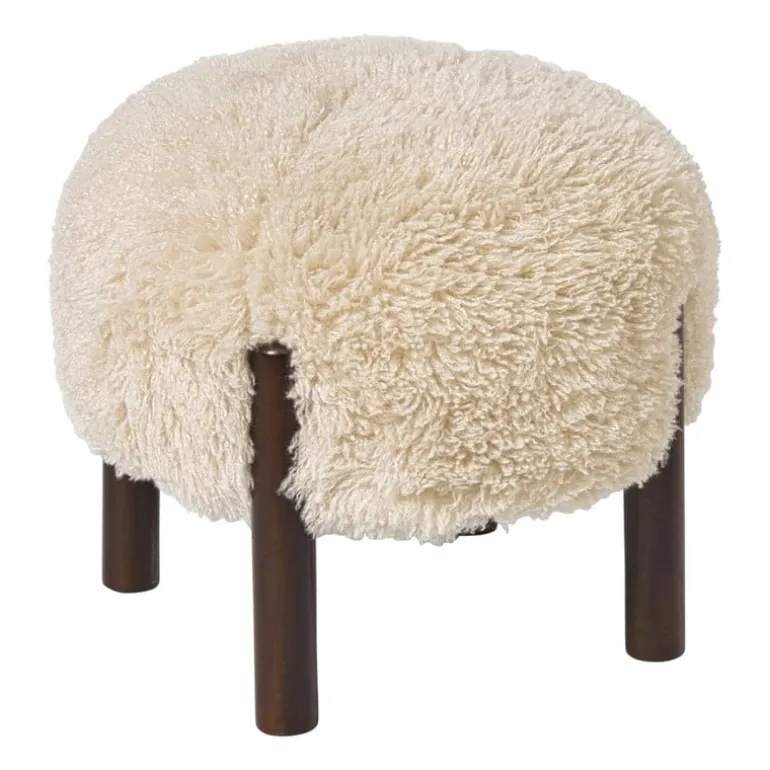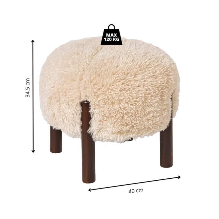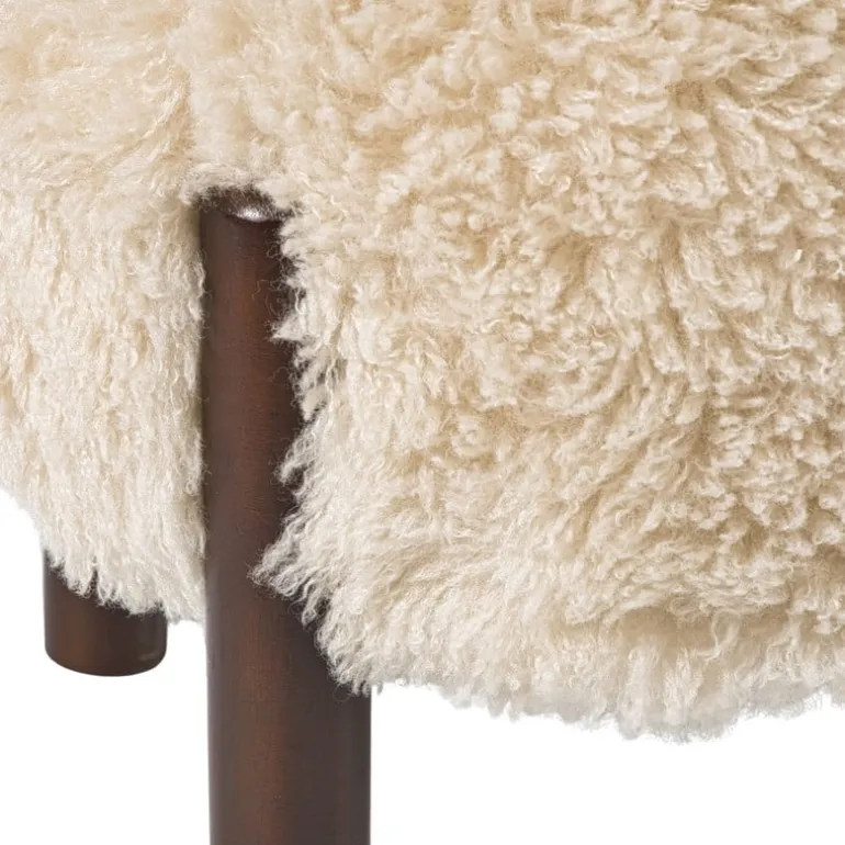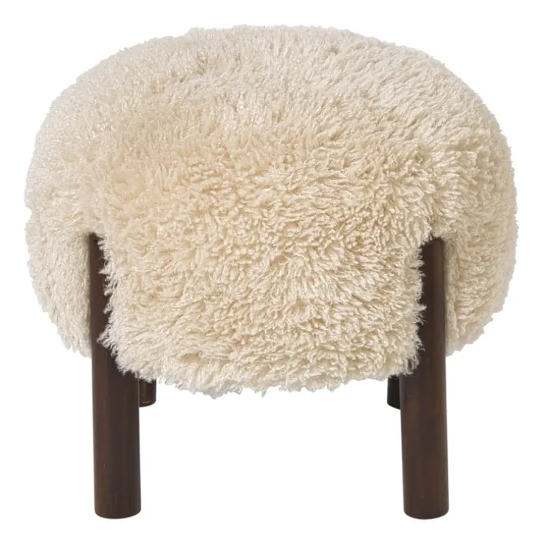 De fluffy stof is gemaakt van polyester en de pootjes zijn van hout.