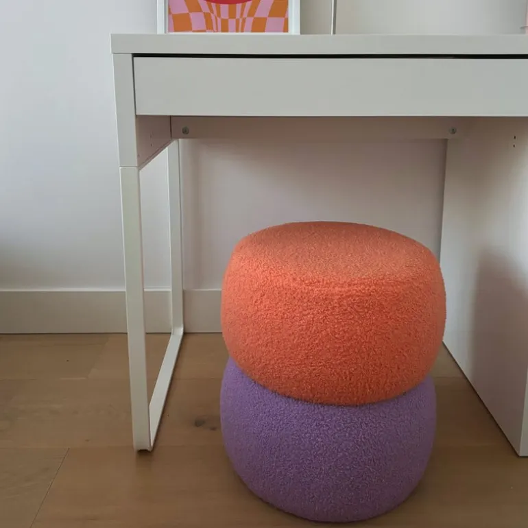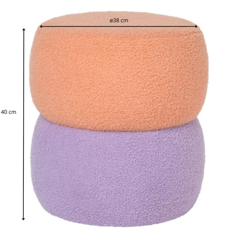 Maak je huis extra gezellig met deze ronde duo poef. Deze poef is niet alleen praktisch, maar ook een echte eyecatcher door zijn vrolijke terra en lilla kleur. Perfect om op te zitten, je voeten op te leggen of als decoratief element in iedere ruimte. Dankzij het compacte formaat is deze poef veelzijdig en gemakkelijk te verplaatsen. Ideaal voor in de woonkamer, slaapkamer of hal.