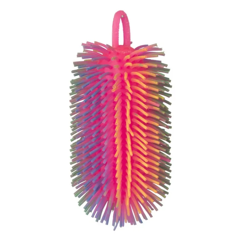 De Rainbow Puffer Ball is een kleurrijk en vrolijk speeltje voor kinderen. Het is gemaakt van zacht en elastisch materiaal. De ball is bedekt met kleine zachte stekels, waardoor het heerlijk is om erin te knijpen en te drukken. Het speeltje is lichtgewicht en gemakkelijk vast te pakken. De vrolijke kleuren maken het een feestje om mee te spelen en het kan ook dienen als stressbal voor volwassenen. Het is een ideaal speeltje om kinderen bezig te houden en hun fijne motoriek te stimuleren.