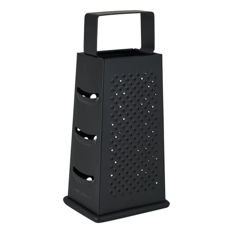Degelijkheid staat bij deze rasp voorop. Het stevige roestvrijstalen design is gemaakt om lang mee te gaan en maakt het raspen van je komkommer, kaas en groenten heel makkelijk! De rasp is voorzien van vier soorten raspen: één met grote, grove gaten voor bijvoorbeeld het raspen van bijvoorbeeld worteltjes, twee met kleinere gaatjes voor het maken van vers geraspte kaas en fijn geraspte groenten en een schaaf, waarmee je makkelijk komkommer in dunne plakjes schaaft. De rasp heeft een handvat waarmee hij ook aan je lepelrek opgehangen kan worden.