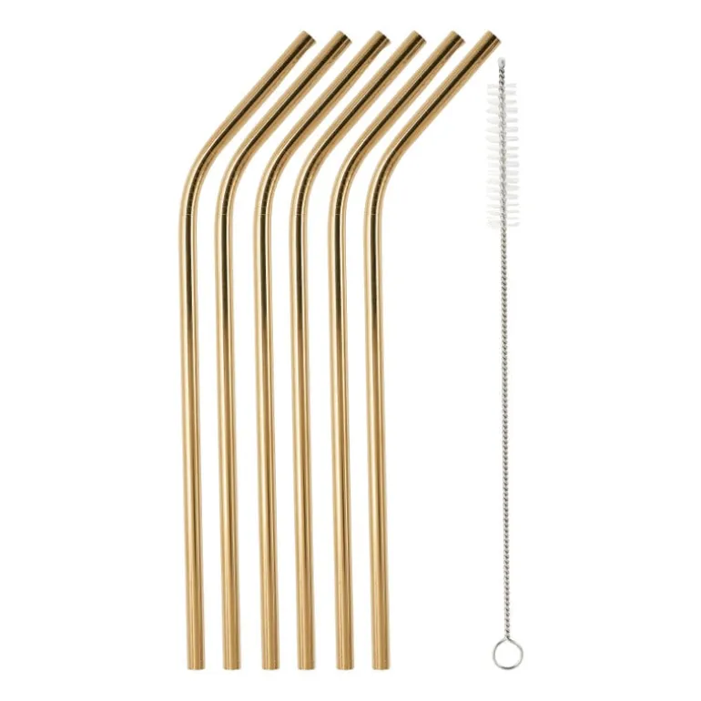 Een cocktail, smoothie of limonade… Het smaakt allemaal beter met een leuk rietje. Deze gouden rietjes zijn gemaakt van roestvrij staal en daardoor meerdere keren te gebruiken. Met het borsteltje maak je ze eenvoudig schoon.