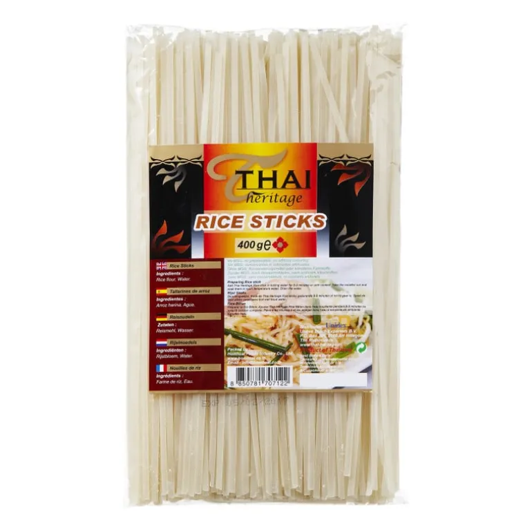Heerlijke rijstnoedels uit Thailand. Gebruik deze noedels voor wokgerechten en (Oosterse) soepen.