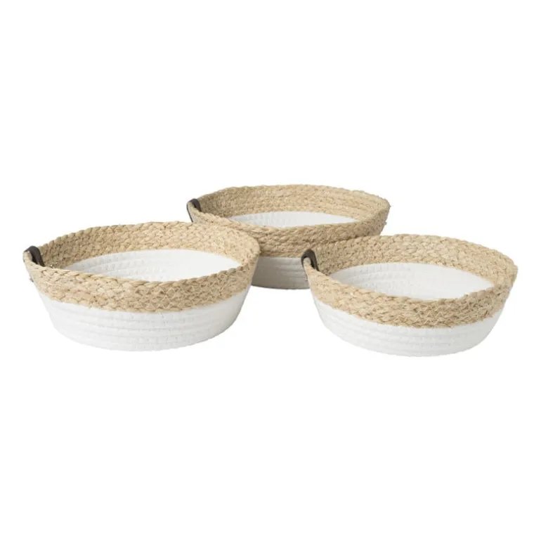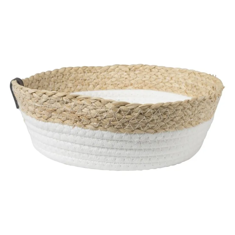 Mandjes zijn altijd goed om een beetje structuur te geven aan jouw leefomgeving. Dit ronde mandje met hengsels is zowel functioneel als stijlvol. De mand zou bijvoorbeeld super leuk staan in de badkamer. Vul de mand met toiletartikelen en washandjes. Het mandje is gemaakt van katoen en PU en heeft een afmeting van ø24×8 cm. Het mandje is licht van kleur en is verkrijgbaar in meerdere varianten.