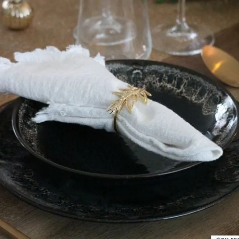 Deze on-trend servetring laat jouw gedekte tafel nog mooier uitkomen. De servetring bestaat uit een gouden ring en een blad element. De stijlvolle servetring zorgt ervoor dat jouw servet netjes blijft opgerold. De diameter is 4 cm.
