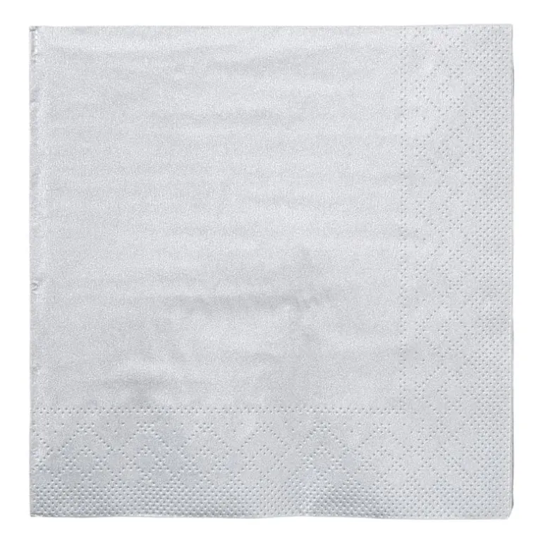 Geef je tafel een chique uitstraling met deze zilveren servetten. Perfect voor feestjes, diners of een gezellige borrel. De glanzende afwerking zorgt voor een luxe look, terwijl het papier stevig genoeg is om praktisch te gebruiken.In één verpakking zitten 20 servetten, ideaal voor grotere gezelschappen of meerdere gelegenheden. Combineer ze met bijpassend servies of andere feestdecoratie voor een compleet gedekte tafel.