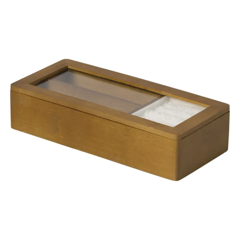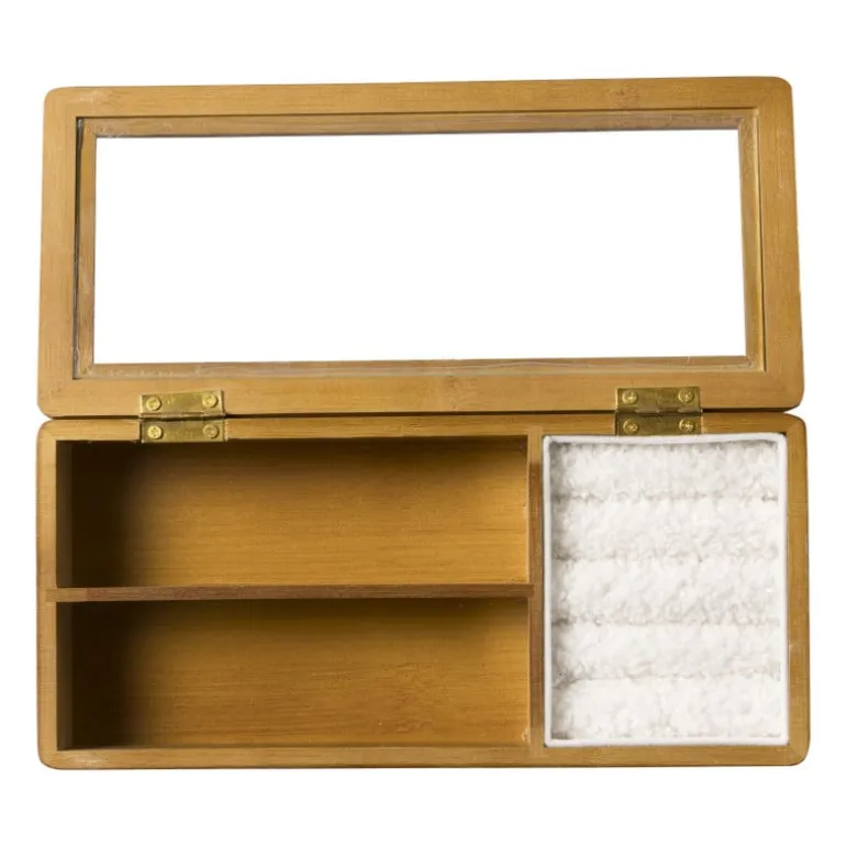 De sieradendoos heeft een hoogte van 5 cm, een breedte van 22 cm en een diepte van 10 cm. Deze sieradendoos heeft 3 vakken.