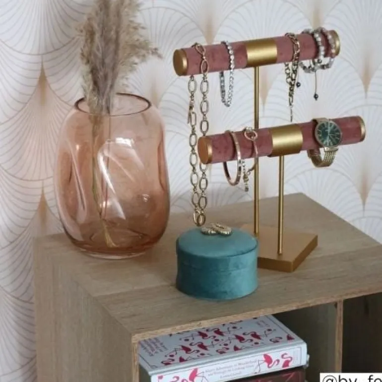Dit sieradenrek is ideaal om jouw sieraden aan op te hangen. Zet het rekje op een tafeltje of in je badkamer en hang er kettingen en armbanden aan. Met dit sieradenrekje heb je al je sieraden bij de hand. Het rekje is erg praktisch en ziet er ook nog eens chique uit.
