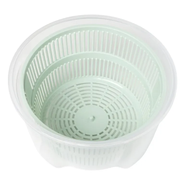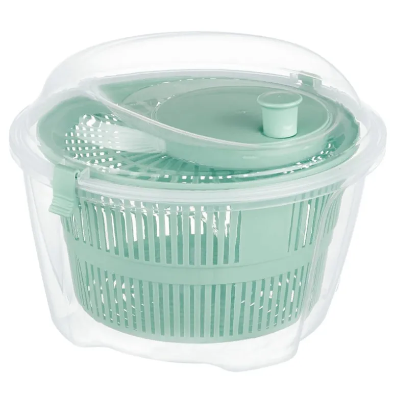 Met deze slacentrifuge kun je al je groenten gemakkelijk wassen. De slacentrifuge bestaat uit een doorzichtige slakom van 4.4 liter, een deksel met een draaimechanisme en een uitlekmandje. De uitlekmand heeft een mintgroene kleur en de andere delen van de slacentrifuge zijn transparant.