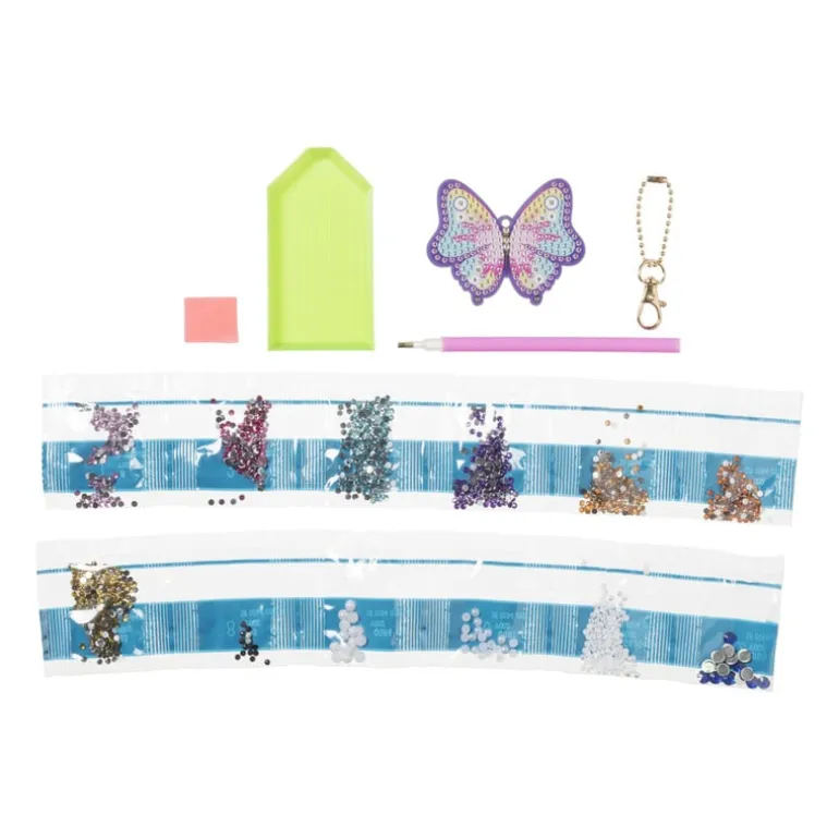 Steek de creatieve handen uit de mouwen en maak je eigen diamond paint sleutelhanger helemaal zelf. In dit pakket zit alles wat je nodig hebt! Het eindresultaat? Een prachtige sleutelhanger in de vorm van een vlinder met een afmeting van 7×7 cm. Ook verkrijgbaar in een hart en kat variant.