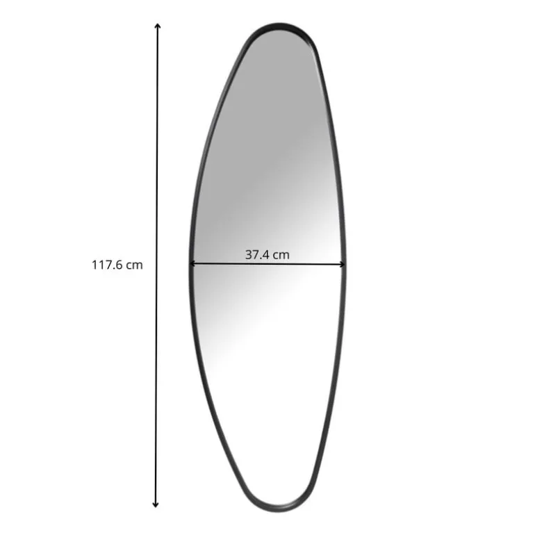 De spiegel heeft een hoogte van 117.6 cm en een breedte van 37.4 cm. Deze spiegel heeft haakjes aan de achterkant waardoor je ‘m gemakkelijk ophangt.