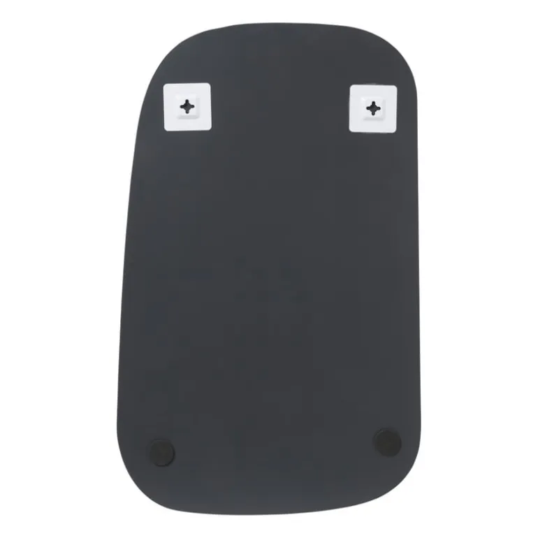 De spiegel heeft twee ophangpunten met kruisvormige schroefkoppen. Zorg dat je de juiste schroeven, pluggen en boor gebruikt, afgestemd op het type muur waarop je de spiegel wilt bevestigen. Hang de spiegel op door de ophangpunten over de schroeven te schuiven. Draai de schroeven stevig vast, maar niet te strak, om beschadiging van de spiegel te voorkomen.