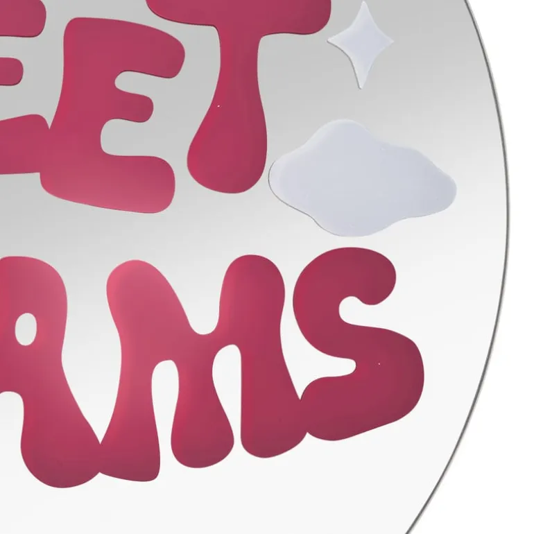 Een spiegel met een knipoog: deze ronde spiegel met ‘sweet dreams’ in het roze erop is een ware eyecatcher voor jouw interieur! Of je ‘m nu in de hal, woonkamer of slaapkamer ophangt, hij voegt direct een funky uitstraling toe. De spiegel heeft geen omlijsting en heeft een diameter van 30 cm.